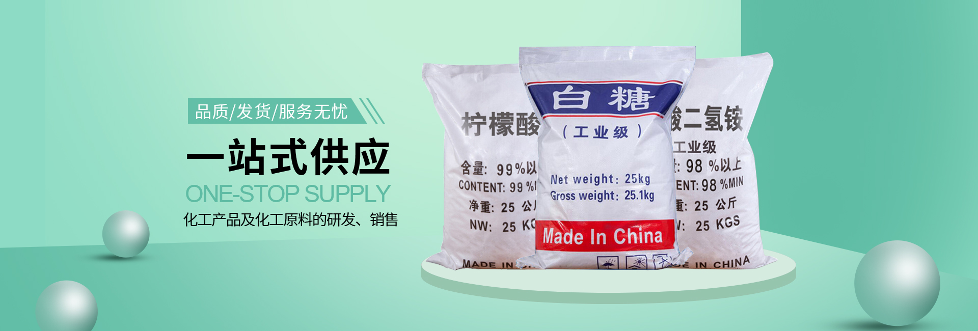 常年供应葡萄糖、葡萄糖酸钠、醋酸钠、碳酸氢钠、三聚磷酸钠、柠檬酸、工业白糖、工业纯碱等各类化工产品,品类齐全,让您无需东奔西跑,为采购而费心。